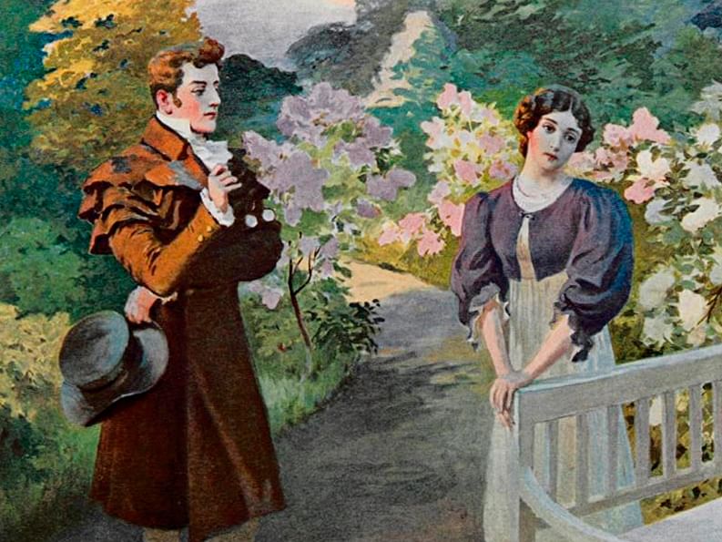 Роман А. С. Пушкина «Евгений Онегин» знакомит с семьей Лариных, где между мужем и женой царит взаимопонимание и согласие. Их дочери, воспитанные на чтении французских романов, верили в предсказания луны и гадания на картах. Они были добры, наивны и чисты.